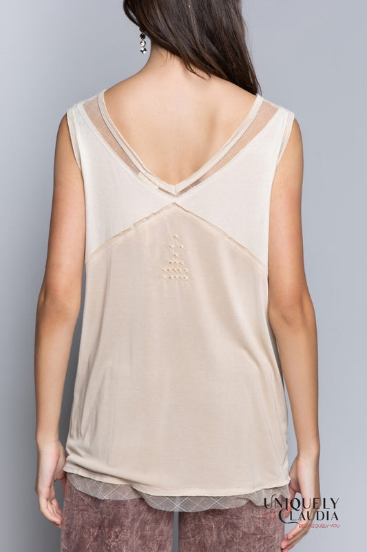Lannie Sheer Lace Trim Sleeveless Top