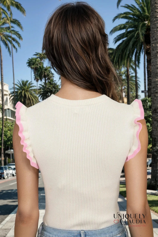 Courtney Pretty in Pink Crochet Trim Ruffle Top & Mini Skirt Set