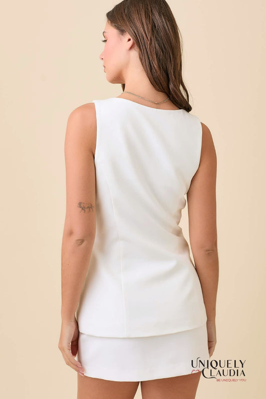 Karla Square Neck Button Down Sleeveless Blazer Romper