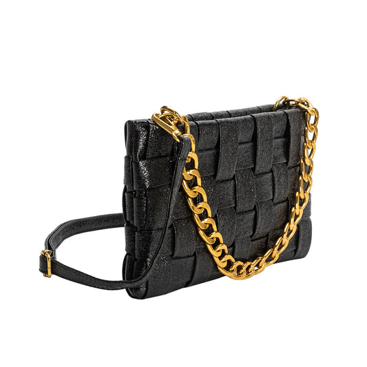 MELIE BIANCO: Mimie Onyx Metallic Recycled Vegan Crossbody Bag