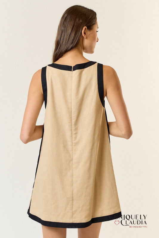 Roselyn Contrast Detail Boat Neck Sleeveless Mini Dress