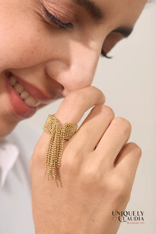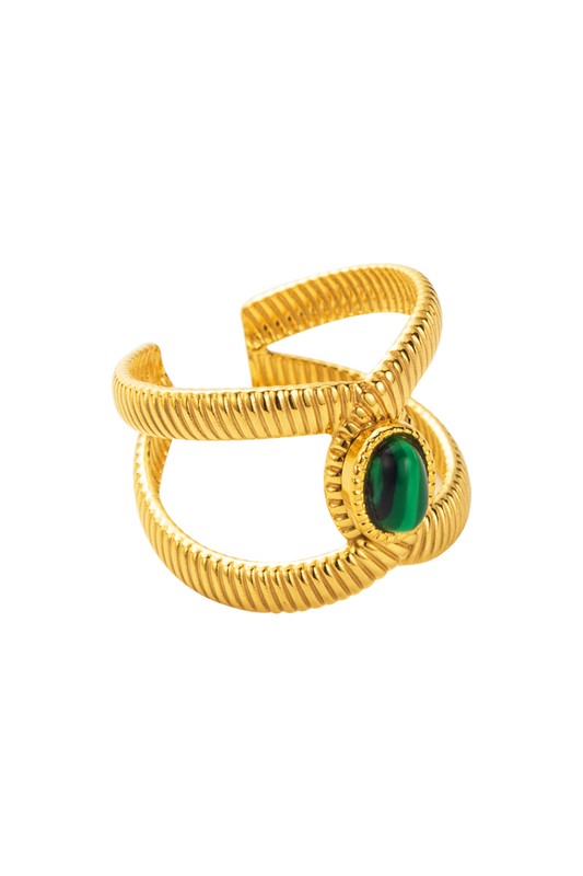 Stainless Steel Gem Layered Cross Adjustable Ring
