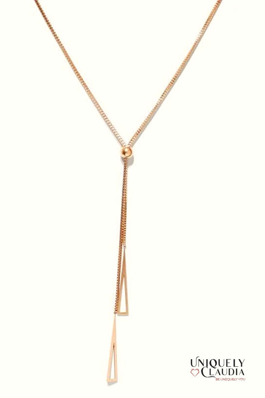 Stainless Steel Pyramids Lariat Goldtone Necklace