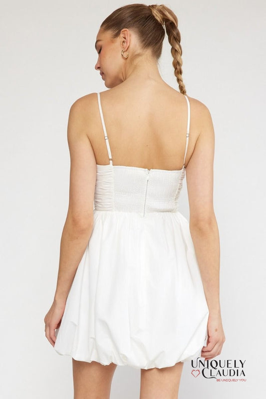 Theresa Spaghetti Strap Ruched Bubble Mini Dress