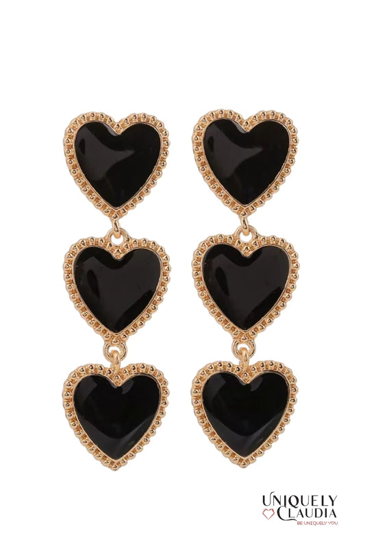 Three Hearts Enamel Earrings