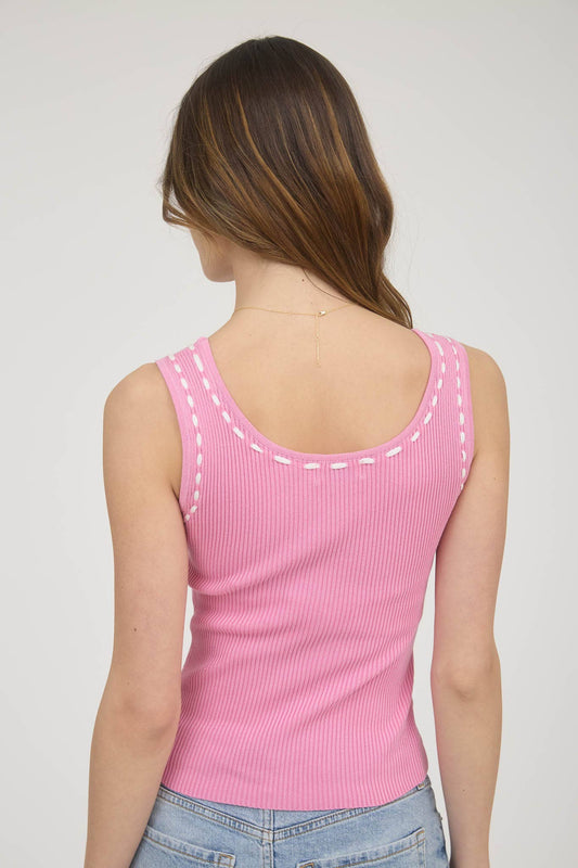Sadie Scoop Neck Front Tie Knit Pink Tank Top