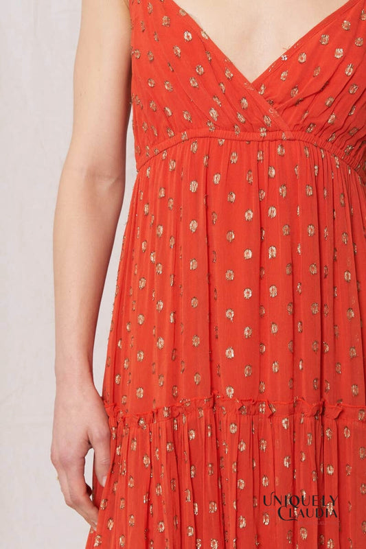 Lisa Metallic Polka Dot Sleeveless Maxi Dress