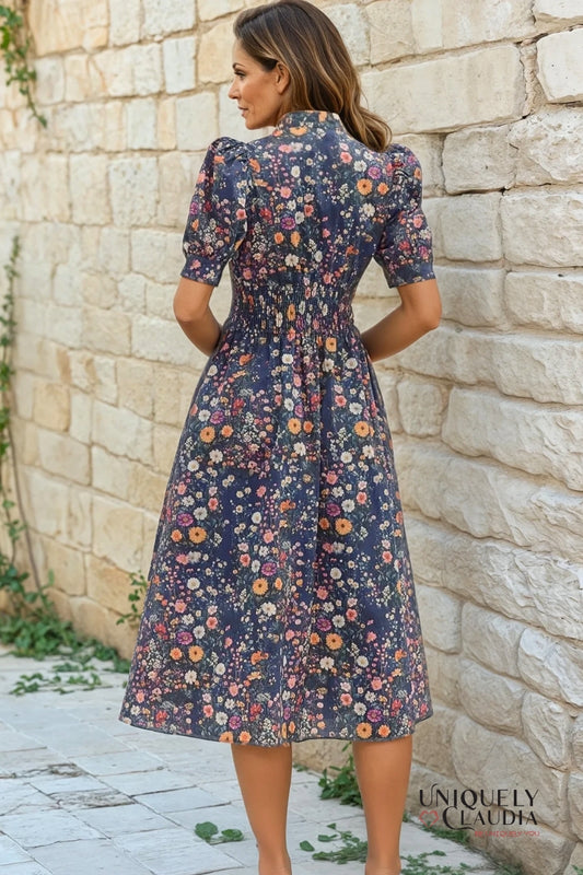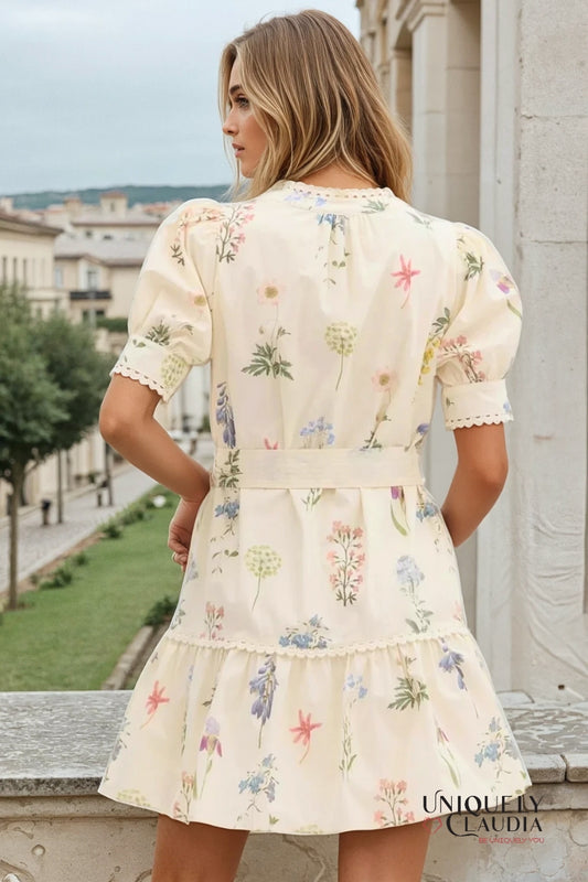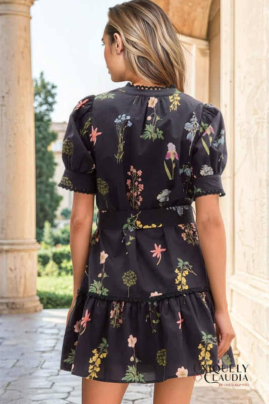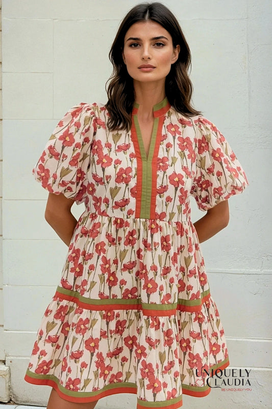 Lindsey Floral Print Bubble Sleeve Pullover Dress