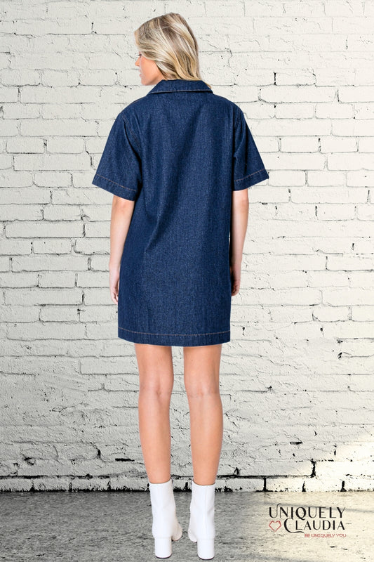Kelly Denim Jewel Buttons Mini Shirt Dress