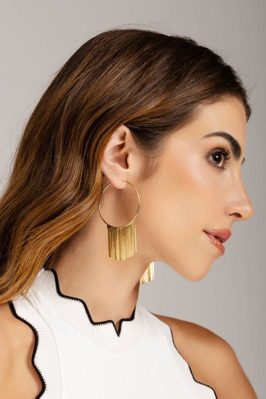 Brooke Tassel Fringe 18k Gold-Plated Hoop Earrings