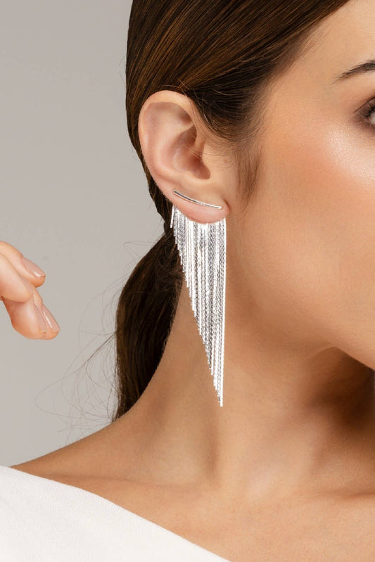 Brooke Tassel Fringe Silver-Plated Hoop Earrings