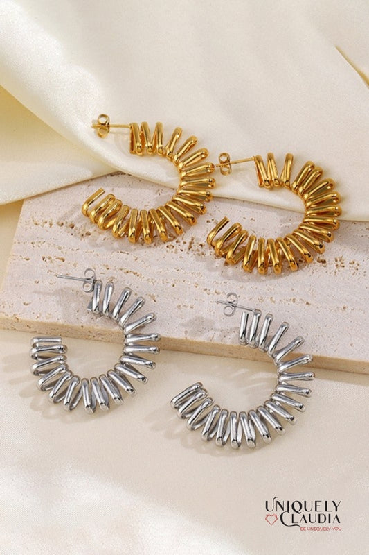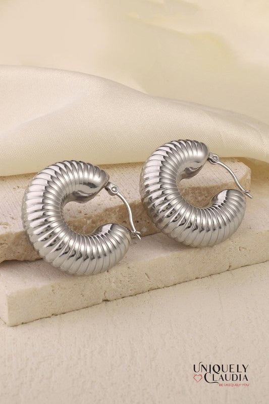 Mini Pearl Cross Hoop Stainless Steel Earrings