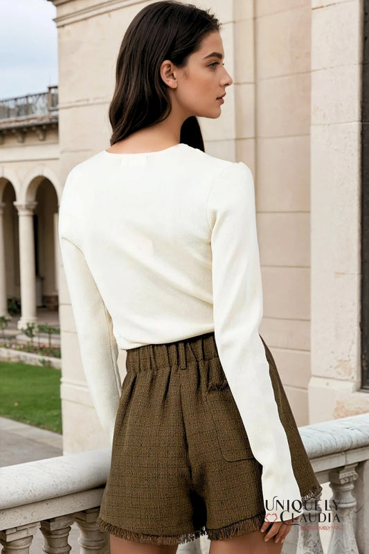 Amanda Chain Closure Ribbed Knit Top