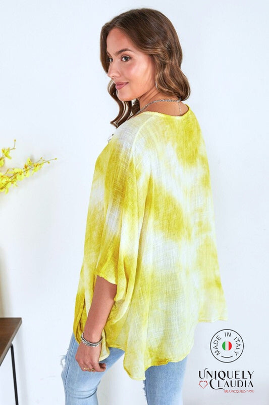 Antonia Lemon Tie Dye Crossover Blouson Top