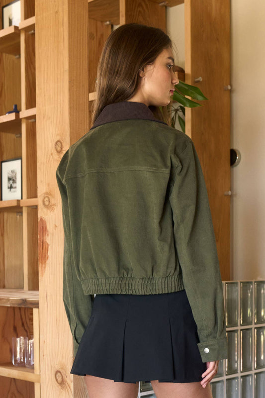Kenia Contrast Collar Corduroy Zip-Up Jacket