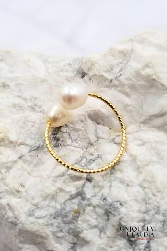 Adjustable Freshwater Pearl Gold-Plated Ring