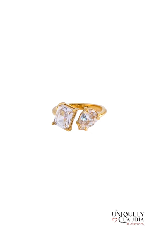 Stainless Steel Gem Layered Cross Adjustable Ring