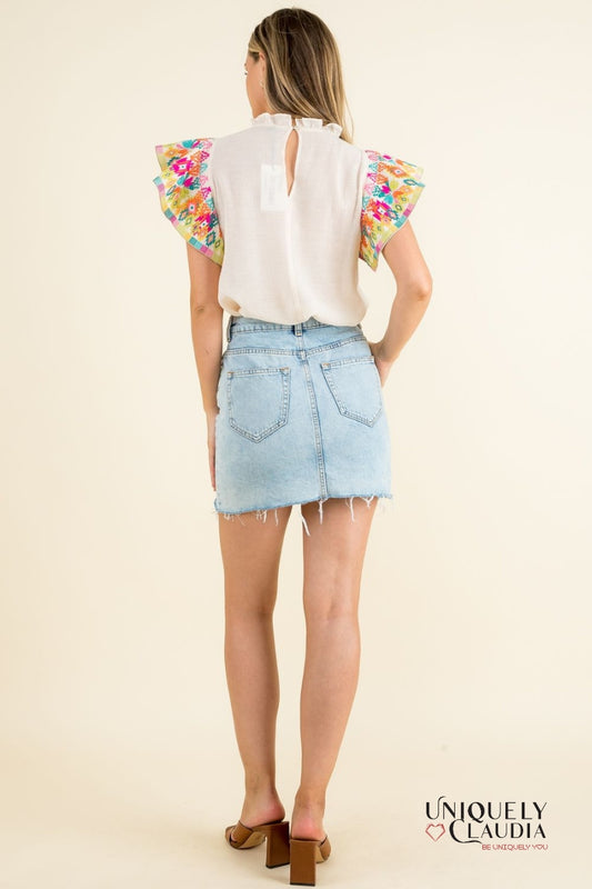 Julianna Ruffle Cap Sleeve Scoop Neckline Top