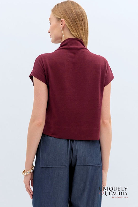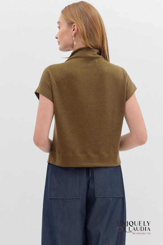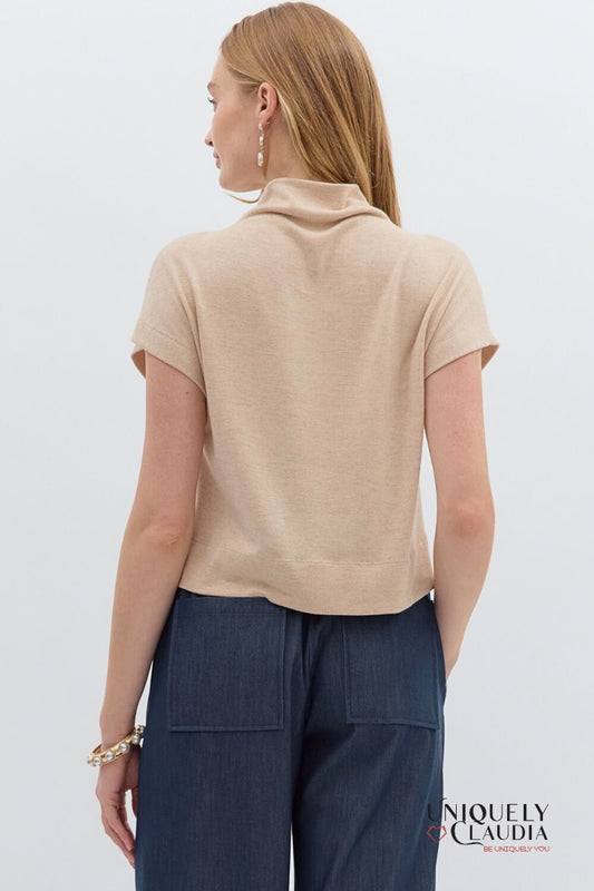 Megan Knit Mock Neck Pullover Oatmeal Top