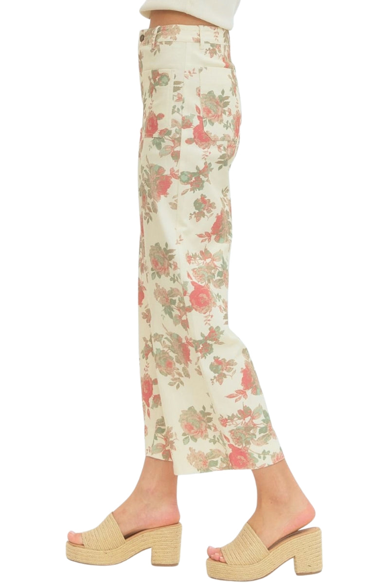 Seraphina Floral Print Ivory Wide-Leg Pants